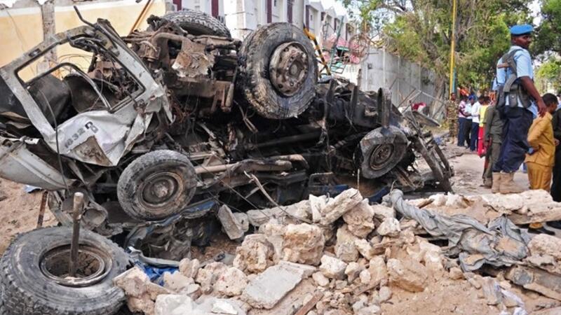 وقال المتحدث باسم الشرطة الصومالية صادق دوديش إنّ “الانفجار نجم عن هجوم انتحاري أراد استهداف موكب عسكري في المكان قَتل شخصان وأصيب 23 بينهم عسكريون”.