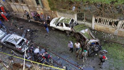 ولبنان منقسم بشان سوريا بين معسكرين احدهما "قوى 14 اذار" وهو تحالف يضم معارضي النظام السوري، واخر "قوى 8 اذار" ومن ابرز مكوناته حزب الله الشيعي وحلفائه الذين يدعمون النظام السوري.