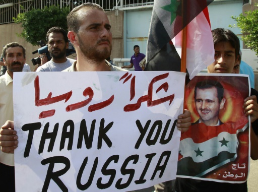 سقطت قذيفتان على مقر السفارة الروسية في دمشق اثناء بدء تجمع متظاهرين امامها لشكر موسكو على تدخلها العسكري في سوريا، فيما حث أبو محمد الجولاني زعيم جبهة النصرة على تصعيد الهجمات على معاقل الأقلية العلوية التي ينتمي إليها الرئيس بشار الأسد ردا على هذا التدخل.