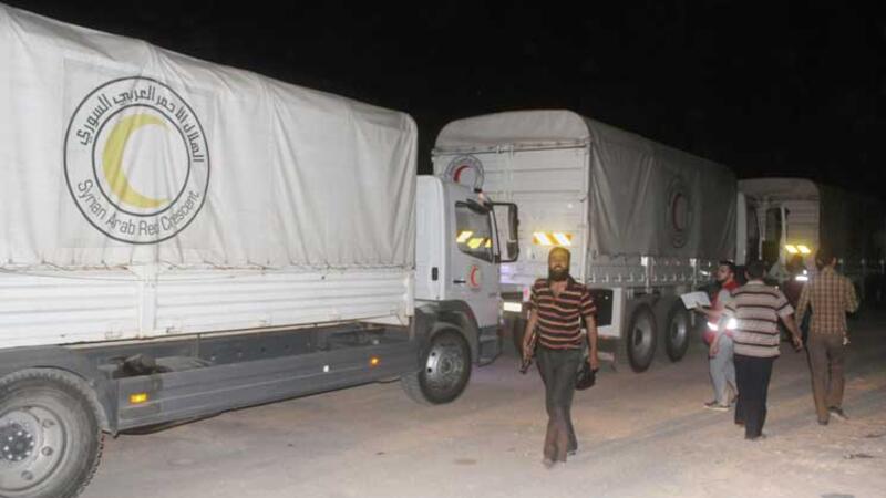 وقال المتحدث باسم مكتب الأمم المتحدة لتنسيق الشؤون الإنسانية ينس لايركه إن شاحنات من الأمم المتحدة والهلال الأحمر العربي السوري نقلت مساعدات غذائية تكفي 2400 شخص في داريا لمدة شهر.