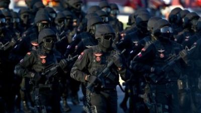 عناصر من القوات المسلحة القطرية خلال عرض بمناسبة العيد الوطني، في الدوحة