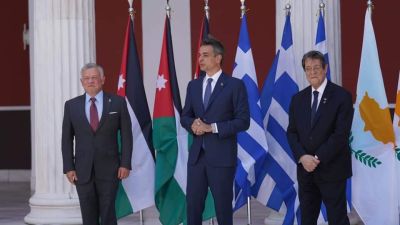استضافت اثينا قمة ثلاثية ضمت الاردن وقبرص الى جانب اليونان بحثت علاقات الصداقة المتينة التي تجمع بين الدول الثلاث وآليات توسيع التعاون في مختلف المجالات، إلى جانب التطورات على الساحتين الإقليمية والدولية.