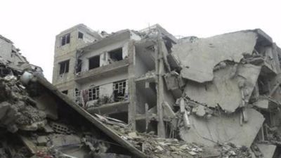 لقطة لبعض الدمار الذي أحدثته غارة جوية لمقاتلات تابعة للأسد في دوما قرب دمشق