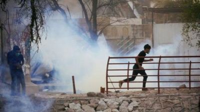 واصيب متظاهر واحد على الاقل بجروح في الراس بقنبلة مسيلة للدموع قبل نقله بسيارة اسعاف الى المستشفى.