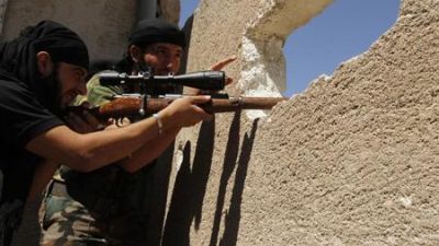مقاتل من الجيش السوري الحر يصوب سلاحه في حلب