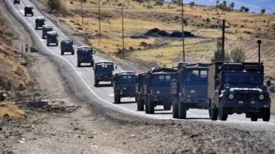 وقالت المصادر ان الطابور المدرع في طريقه الى معسكر للمتشددين في منطقة تبعد نحو 20 كيلومترا من موقع خابور الحدودي وقرب مدينة زاخو العراقية.