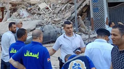 انقاض المبنى  الذي انهار في مصر