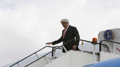 وكان جون كيري قد قام بزيارة غير معلنة إلى بغداد الجمعة 8 أبريل/نيسان حيث بحث مع مسؤولين عراقيين سبل محاربة تنظيم "الدولة الإسلامية" الإرهابي.