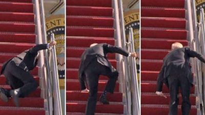 وكان قد انتشر في مواقع التواصل الاجتماعي مقطع فيديو لبايدن وهو يتعثر ساقطا ثلاث مرات في أثناء صعوده سلم الطائرة.