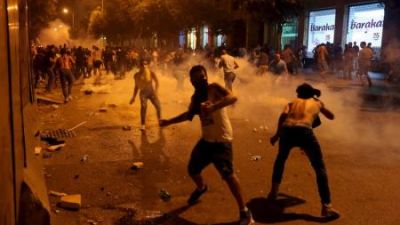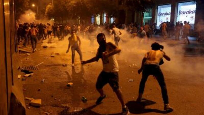 متظاهرون يشتبكون مع قوات الامن اثناء احتجاجات ضد الحكومة في بيروت