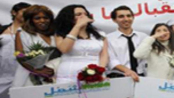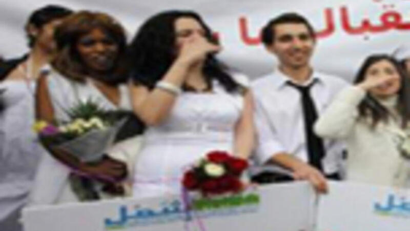 وقالت ديانا عساف المتحدثة باسم الاحتفالية "كما ترون فاننا نرتدي بزات وفساتين عرس لمطالبة الحكومة بقانون احوال مدنية جديد ..قانون اختياري."
