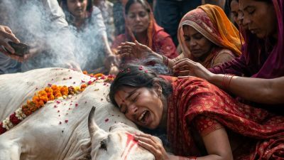 لحظة صادمة: امرأة هندية تنهار أثناء وداع بقرتها المقدسة