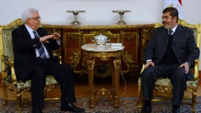 الرئيسان المصري محمد مرسي والفلسطيني محمود عباس خلال اجتماع في القاهرة سبق لقاء فتح حماس/أ.ف.ب