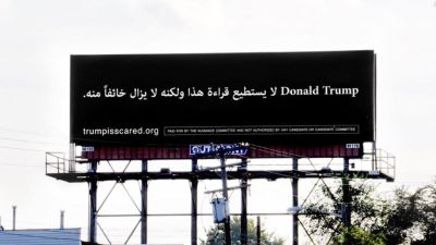 لوحة إعلانية بالعربية "لتخويف" دونالد ترامب