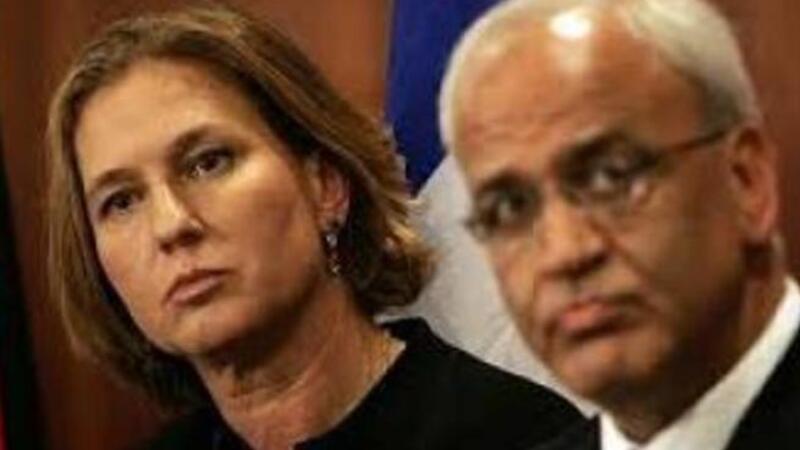 رئيس الطاقم الفلسطيني صائب عريقات ووزيرة العدل الإسرائيلية تسيبي ليفني