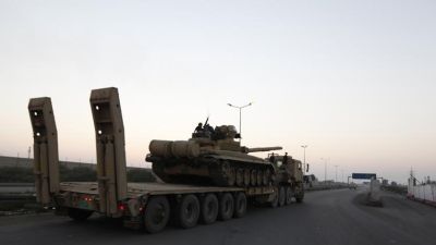 دبابة للجيش العراقي يجري نقلها الى الانبار