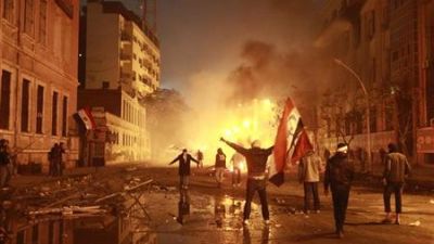 وأضاف أن متظاهرين حطموا اجزاء من رصيف الشارع لانتزاع حجارة رشقوا بها قوات الامن.