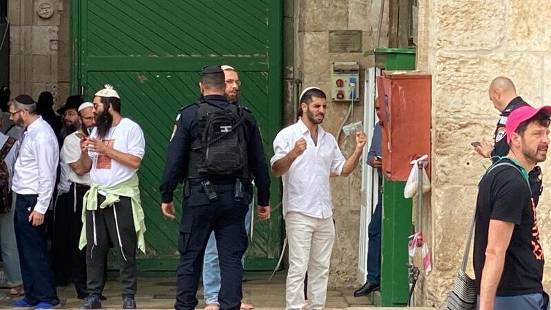 متطرف يؤدي رقصات توراتية خلال مروره من أمام المصلى القبلي pic.twitter.com/zEGhjHh4D6