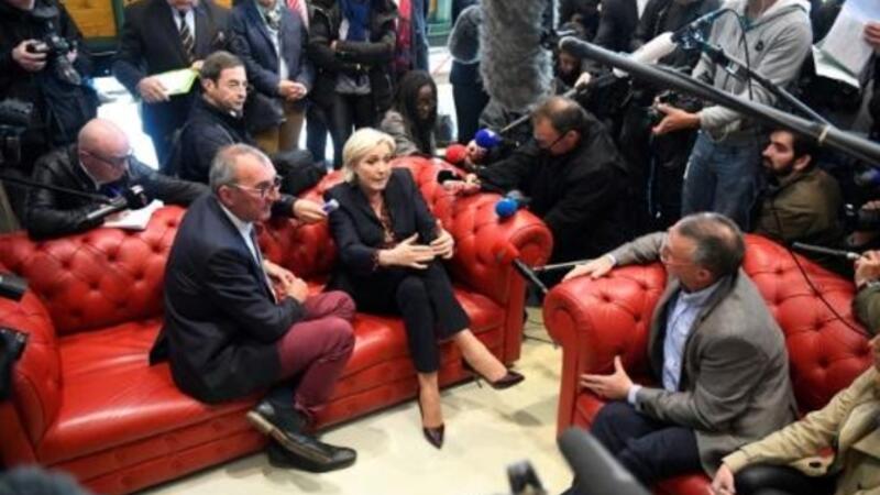 وتجمع نحو 50 شخصا لدى وصول لوبن إلى شركة ملاحة في بلدة دول دي بريتاني (غرب)، حيث رشقوها بالبيض هاتفين "فليخرج الفاشيون".