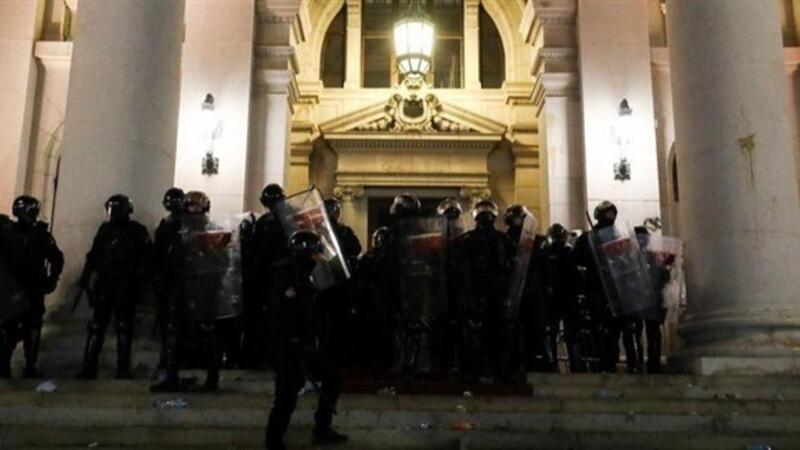 متظاهرون يقتحمون البرلمان الصربي احتجاجا على إغلاق العاصمة