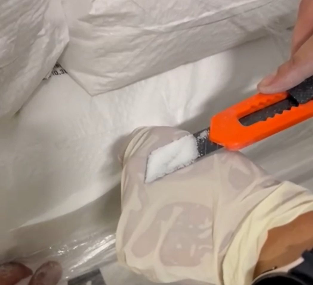 تم نقل هذه المادة إلى أحد المختبرات لإجراء فحص دقيق، حيث تبين أن هناك شبهة في أن المادة التي تم العثور عليها هي مادة كلوريد الأمونيوم وزنها 16 طنًا، وكانت مخبأة بين أكياس الجص.
