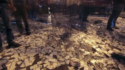 وبدا الشارع أمام المقر مغطى بكميات كبيرة من أوراق الدعاية الصغيرة التي تناثرت لمسافة مئات الأمتار من المقر الذي يوجد في منطقة الدقي بمدينة الجيزة المطلة على نيل القاهرة.