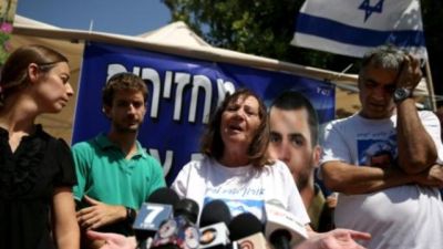 والدة الجندي اورون شاؤول خلال مؤتمر صحافي