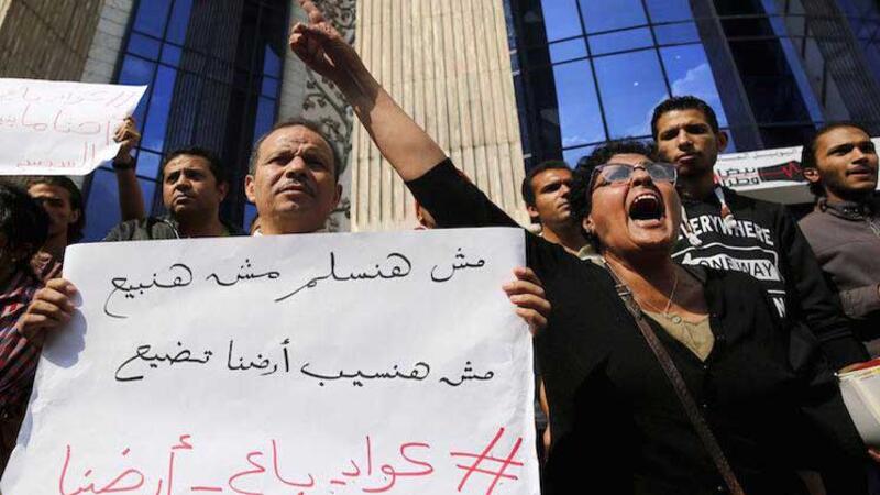 وشهدت مصر مظاهرات يومي 15 و25 أبريل/ نيسان 2016؛ احتجاجا على قرار الحكومة المصرية بـ”أحقية” السعودية في جزيرتي تيران وصنافير عند مدخل خليج العقبة في البحر الأحمر، بموجب اتفاقية لإعادة ترسيم الحدود، وقعها الطرفان في الشهر ذاته، وهو ما اعتبرته جهات معارضة وأحزاب سياسية “تنازلاً” عن سيادة مصر على الجزيرتين.