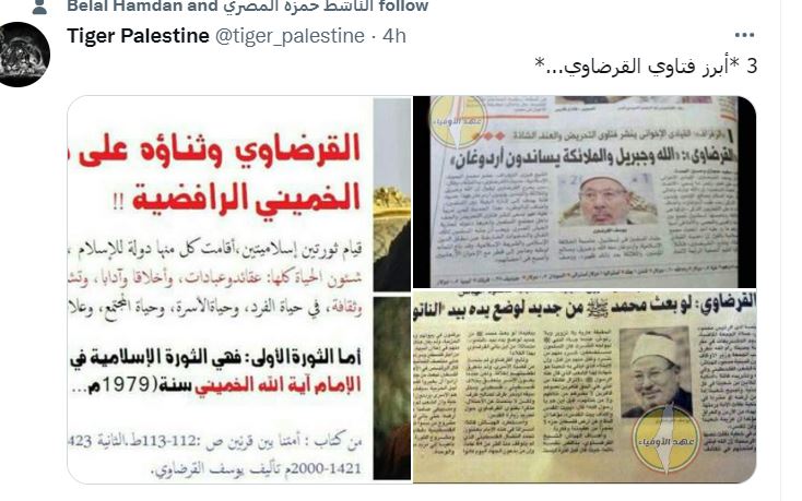 بعد ساعات من اعلان وفاة الشيخ يوسف القرضاوي ورسائل النعي التي صدرت عن الزعماء والاحزاب والتنظيمات والنشطاء ايضا، متحدثين عن مناقب وفتاوي الشيخ الراحل ، خالف محللون ورواد على مواقع التواصل الاجتماعي هذه المواقف واتهمو يوسف القرضاوي بتحريف الدين وجاؤوا بامثلة تلصق به تهمه مفتي الناتو وتدمير الدول العربية