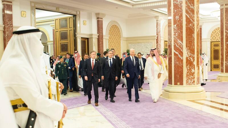 وقال مستشار الأمن القومي الأميركي، جيك سوليفان، أثناء حديثه مع الصحافيين على متن طائرة الرئاسة من إسرائيل إلى جدة، إنّه خلال اجتماع القمة سيمكّن بايدن من "طرح رؤيته واستراتيجيته بوضوح وبشكل موضوعي" والمتعلقة بالانخراط الأميركي في الشرق الأوسط، مضيفًا "إنه عازم على ضمان عدم حدوث فراغ في الشرق الأوسط" تملأه الصين وروسيا.