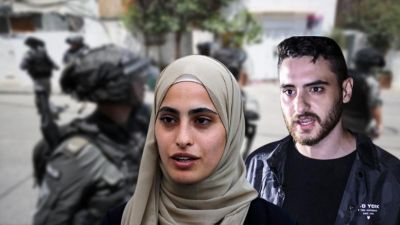 ""منى الكرد خلال مواجهة مع جندي اسرائيلي