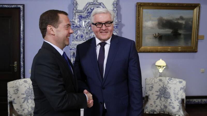 رئيس الوزراء الروسي مدفيديف ووزير الخارجية الألماني شتاينماير