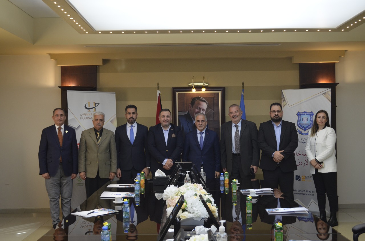 ووقع المذكرة عن جانب الجامعة رئيس جامعة عمان الأهلية الأستاذ الدكتور ساري حمدان ، وعن الهيئة العربية للبث الفضائي رئيسها الأستاذ محمد العضايلة، وذلك بحضور مجموعة من الاساتذة والمحاضرين في الجامعة من بينهم الأستاذ الدكتور عبد السلام الشبول عميد كلية العمارة والتصميم، والأستاذ الدكتور أنس السعود نائب الرئيس لشؤون العلاقات الدولية والجودة/ مدير مركز الارتباط العالمي، والدكتور كريم أحمد فاضل رئيس قسم التصميم السينمائي والتلفزيوني والمسرحي، وعن الهيئة الدكتور أكرم خزام مدير المركز العربي للتدريب والتأهيل، والإعلامي، والأستاذ زياد الريس مدير إدارة الإعلام والاتصال الى جانب لفيف من النخب الاعلامية والاسماء اللامعة في المجال الاعلامي