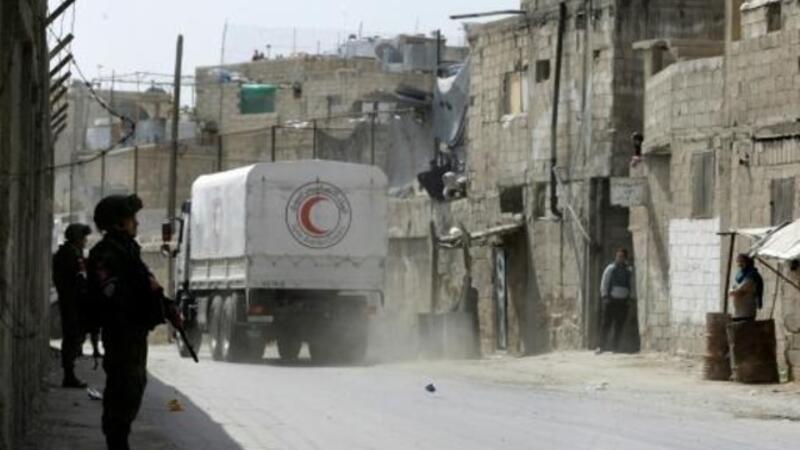 وتتألف القافلة المشتركة بين الأمم المتحدة واللجنة الدولية للصليب الأحمر والهلال الأحمر السوري من 46 شاحنة محملة بالمواد الغذائية والطبية وتكفي لـ27500 ألف شخص في معقل الفصائل المعارضة الأخير قرب دمشق.