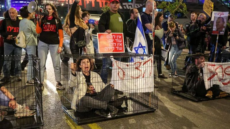 وقالت صحيفة "هآرتس" العبرية إن المتظاهرين قاموا بحبس أنفسهم بأقفاص في "تل أبيب"؛ للمطالبة بعقد صفقة تبادل والإفراج عن أسرى الاحتلال في غزة.