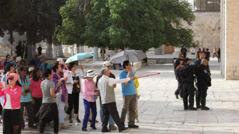 جدد عشرات المستوطنين الإسرائيليين اقتحاماتهم لساحات المسجد الأقصى بحماية عناصر من الشرطة الإسرائيلية.