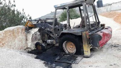 أحرق مستوطنون، صباح الجمعة، جرافة (آليه حفر) وخطوا شعارات عنصرية في بلدة بورين قرب نابلس شمالي الضفة الغربية.