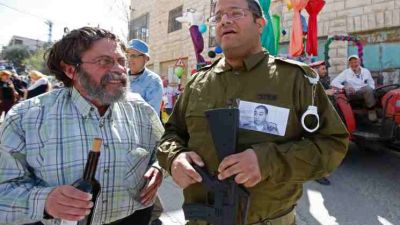 وارتدى محام من اليمين المتطرف لباسا يشبه لباس الجندي عزريا الذي دين بقتل الفلسطيني وحكم عليه بالسجن 18 شهرا. وافاد مراسلون لوكالة فرانس برس في المكان ان مكبرات للصوت كانت توجه الشكر للجندي وسط هتافات التأييد من الحشد.