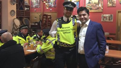 وتشير الصحيفة إلى أن السيد دوجس، مالك مطعم الكباب في بريطانيا، أبقى مطعمه مفتوحا حتى الساعة 11.30 مساء، مع خروج آخر ضابط.