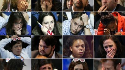 احباط وحزن يخيم على أنصار هيلاري كلينتون بعد فوز ترامب بمقعد الرئاسة