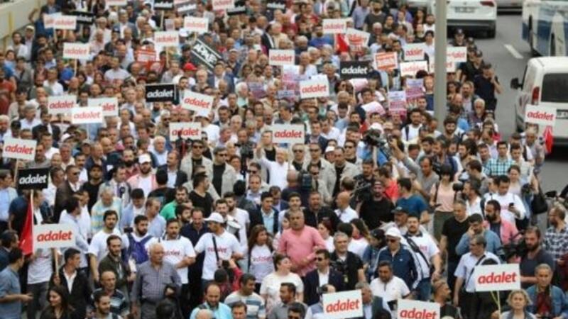 وقاد التظاهرة رئيس الحزب، كمال كيليتشدار اوغلو، الذي تعرض إلى انتقادات في الماضي لعدم اتخاذه موقفا قويا بما فيه الكفاية ضد الرئيس رجب طيب اردوغان، رافعا لافتة كتب عليها "عدالة".