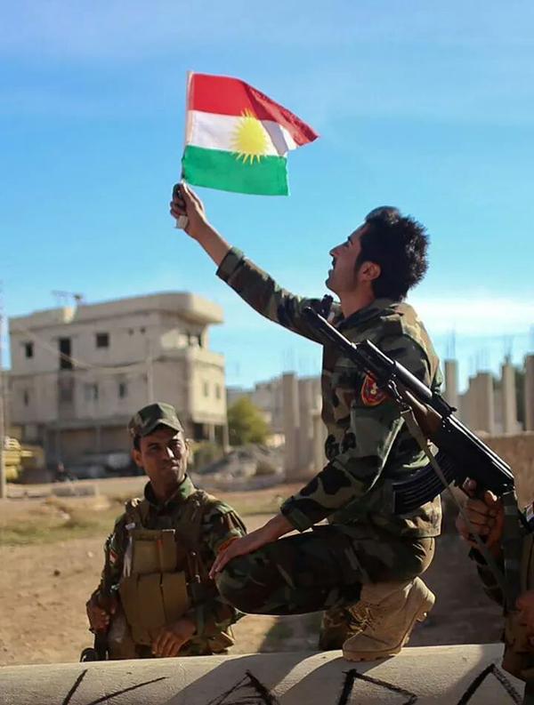 واكدت صحيفة "الديلي ميل " البريطانية ان المقاتلين الاكراد رفعوا علم النصر على احد ابراج الكهرباء فوق تلة في كوباني.