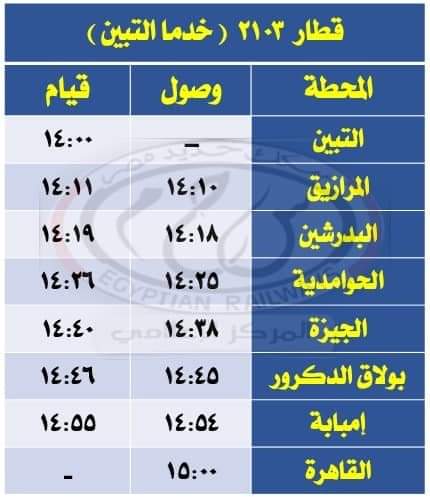 - تعديل ميعاد قطار 2103 ( خدما التبين ) كالجدول المرفق .