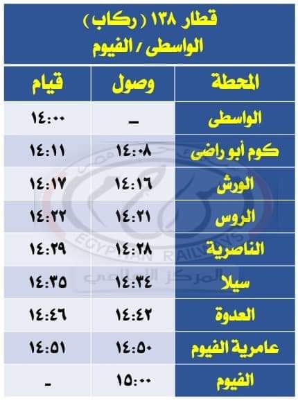 - تعديل ميعاد قطاري 147 و138 ركاب الفيوم / الواسطي والعكس كالجداول المرفقة .