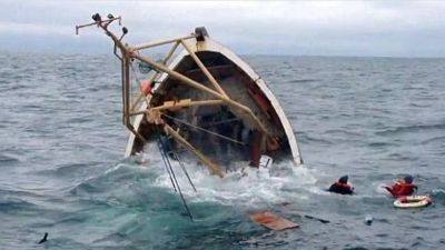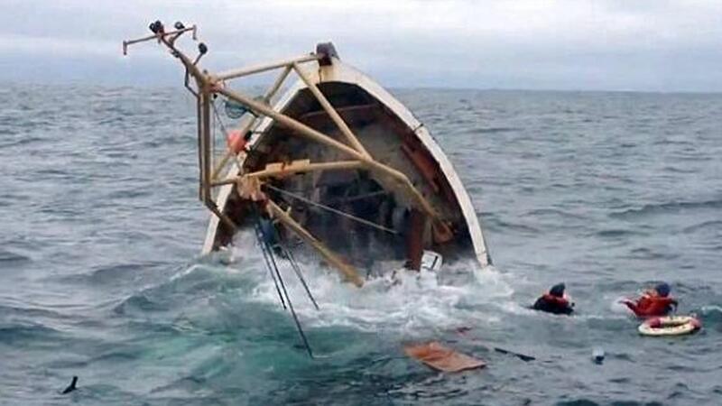 يُعتقد أن الزورق انقلب في المياه الهائجة على بعد سبعة أميال (11 كيلومترا) قبالة ساحل الجزيرة.
