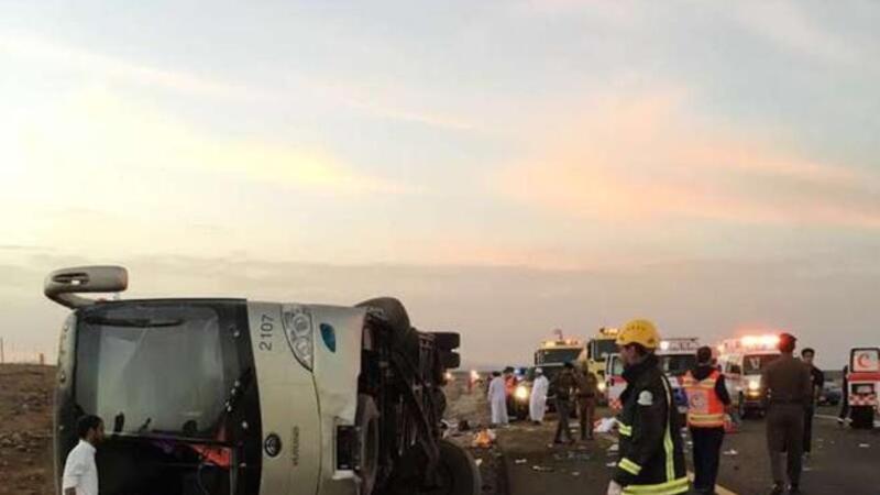 توفي 19 معتمرا، وأصيب 22 آخرون، من الجنسية المصرية، في انقلاب حافلة على الطريق الرابط بين مكة المكرمة والمدينة المنورة، صباح اليوم السبت، فيما تشير التحقيقات الأولية إلى أن سبب الحادث نوم السائق أثناء القيادة.