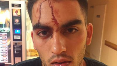 وهناك، يقول كوهين انه رأى في المرآة دماء تسيل من جرح في رأسه وتلطخ وجهه وكذلك ملابسه وحذاءه، فاسرع الى مستوصف قريب حيث اجريت له عملية خياطة للجرح كما تم تشخيص اصابته بكسر في الانف.