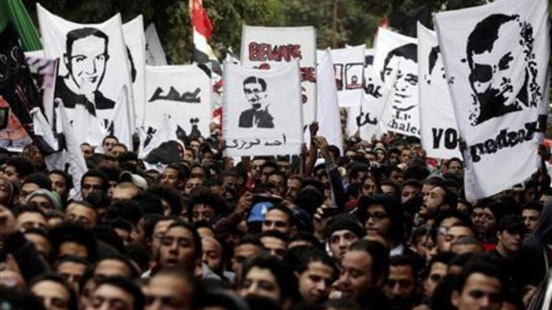ويعتصم أعضاء في مجموعة من مشجعي الاهلى أمام مقر مجلس الشعب بوسط القاهرة للمطالبة بالقصاص من قتلة زملائهم.