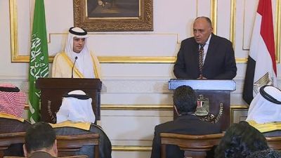 وفي مؤتمر صحافي مشترك عقداه في القاهرة التي وصلها عصرا الوزير السعودي، قال الجبير "اننا نتطلع لتكثيف وتعزيز وتعميق العلاقة الاستراتيجية التاريخية بين بلدينا في كافة المجالات وخاصة في مجال مواجهة التطرف والارهاب الذي يمس امن واستقرار بلدينا الشقيقين والمنطقة بشكل عام".