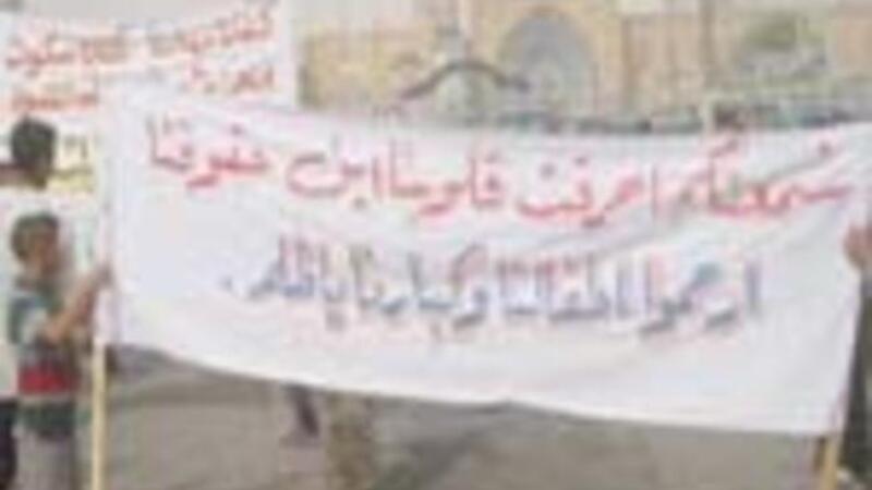 عبر مواطنون عراقيون عن غضبهم من حكومة نوري المالكي في مظاهرة حاشدة سارت في مدينة الكاظمية يوم اول امس االسبت 27/8/2006،